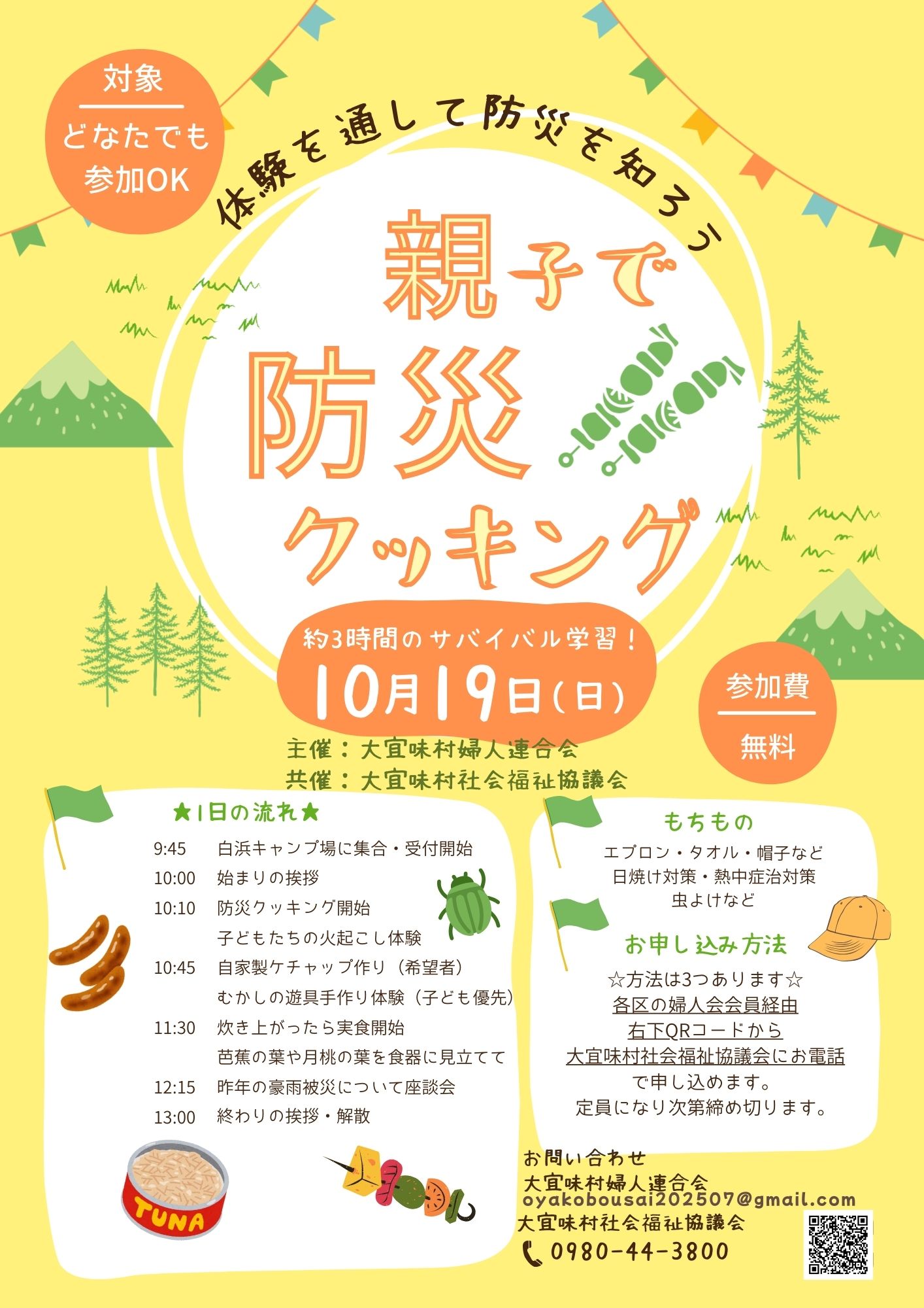 お問い合わせは、大宜味村婦人連合会(oyakobousai202507@gmail.com)までお願いします。